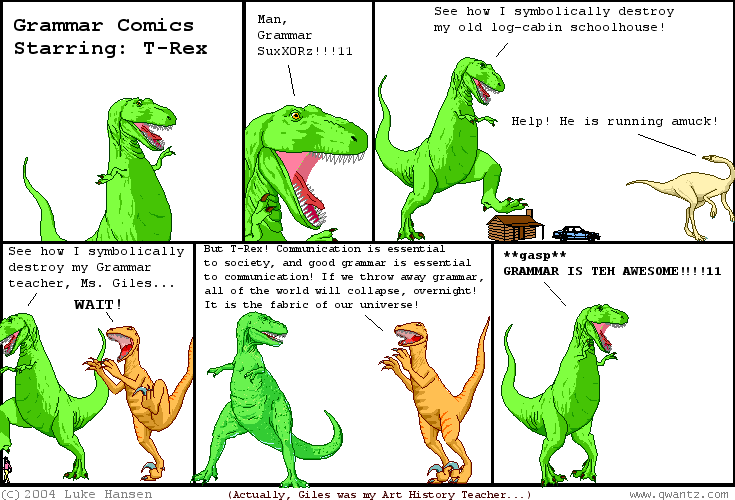 The ‘rules’ change, sometimes slowly and sometimes quite fast. What you were taught at school may or may not be correct and I guaruntee that, unless you did linguistics at university level, it avoided the glorious complexity of language structure. Grammar in written English is different to grammar in spoken English. Lolspeak becoming a language of its own which is incredibly exciting. The writer who gets what grammar does and how to use it in both expected and unexpected ways has the power to use her words to maximum effect.